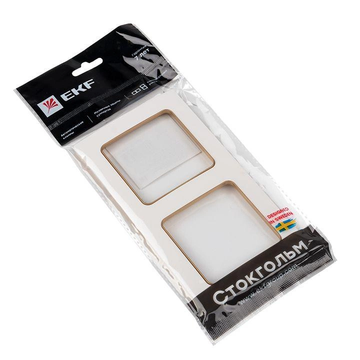 Полное описание: Рамка 2-м Стокгольм бел. с линией цвета шампань PROxima EKF EYM-G-303-10