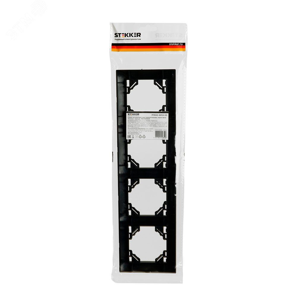 Рамка четырехместная горизонтальная серия Эрна Элегант черный STEKKER