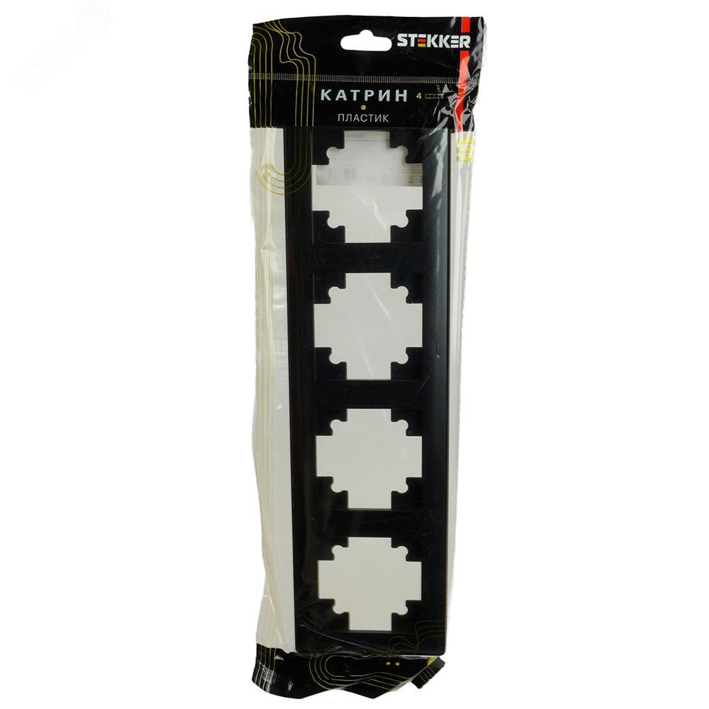 Рамка четырехместная пластик серия Катрин черный STEKKER