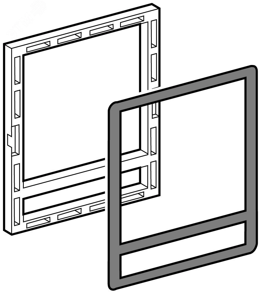 Рамка двери входит в базовую комплектацию выключателя выкатного SystemePact ACB2. При установке рамки в вырез двери щита степень защиты аппарата увеличивается до IP40. Может быть заказана отдельно.