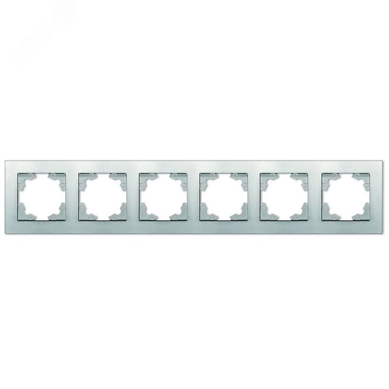 Рамка шестиместная горизонтальная Афина серебро (еврослот)