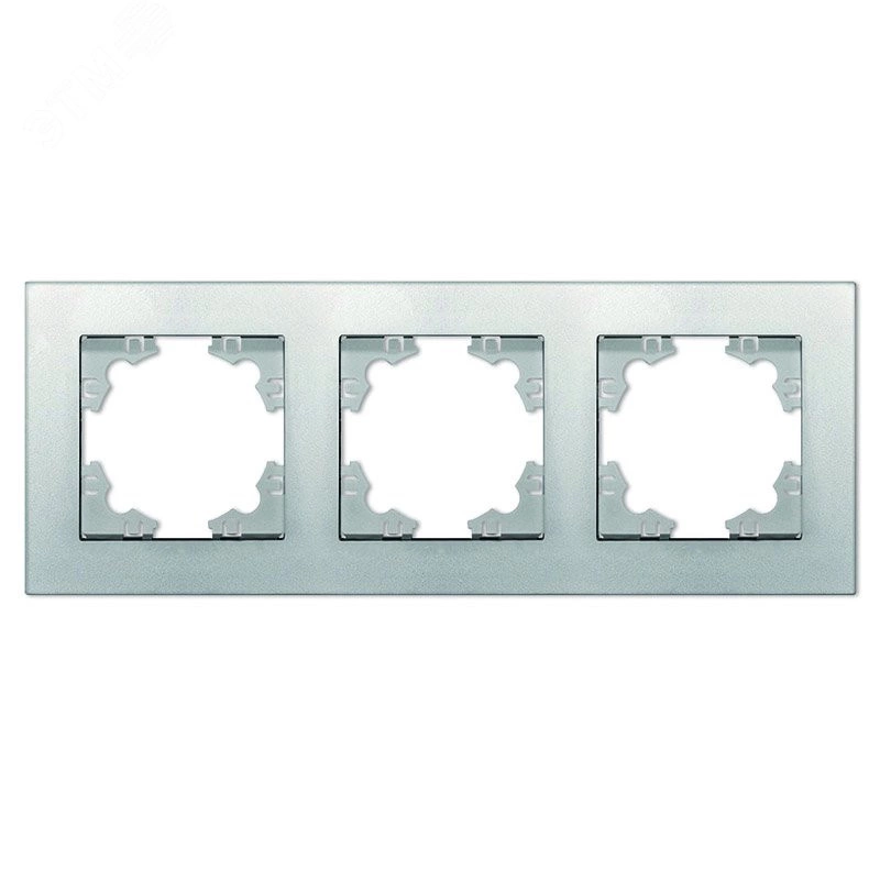 Рамка трехместная горизонтальная Афина серебро (еврослот)