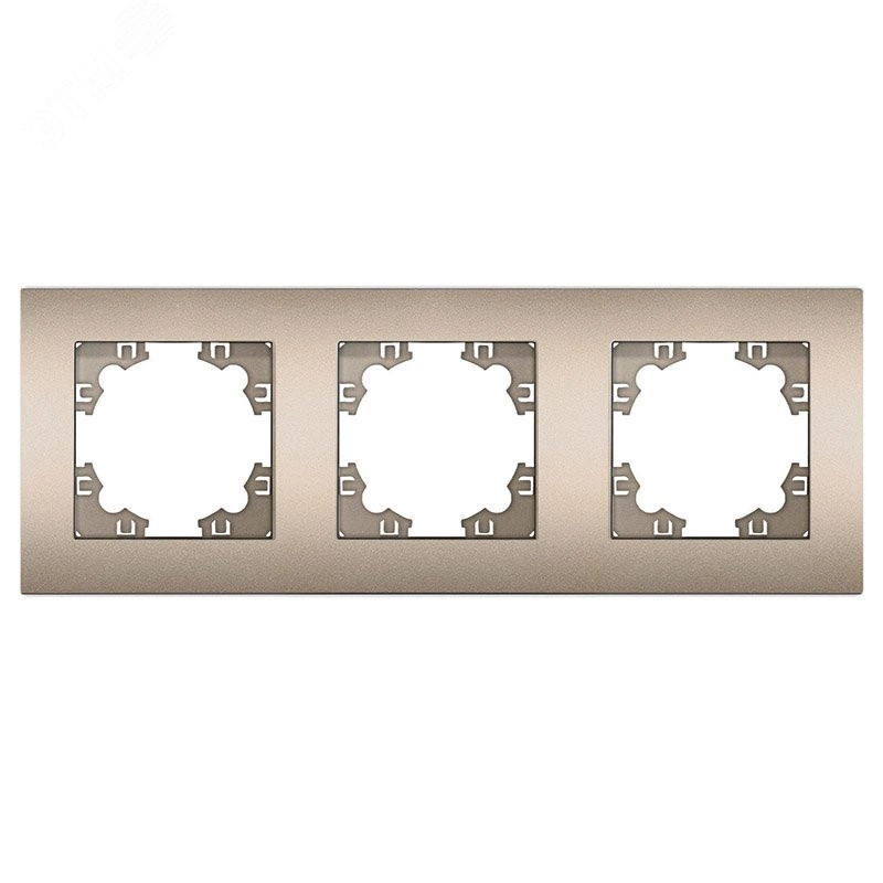 Полное описание: Рамка трехместная горизонтальная Афина шампань (еврослот)