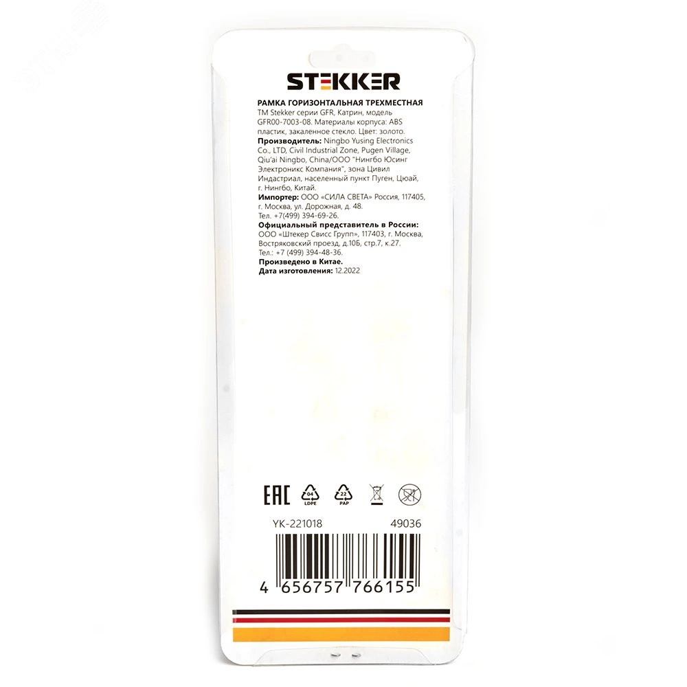 Рамка STEKKER GFR00-7003-08 на 3 поста. Материал: Стекло/ABS пластик, цвет золото, размер 227*84*9мм. Толщина стекла рамок составляет 3 мм, что придает рамке легкость и элегантность. Все пластиковые подложки выполнены в цвет стекла. Серия Катрин ''ТМ Stekker'' лаконичное и стильное решение для любого интерьера. Широкая цветовая гамма механизмов и стеклянных рамок позволяет реализовывать стильные решения и создавать уникальные акценты. Комбинации рамок и механизмов можно подобрать таким образом, чтобы создать уникальный ансамбль с освещением.