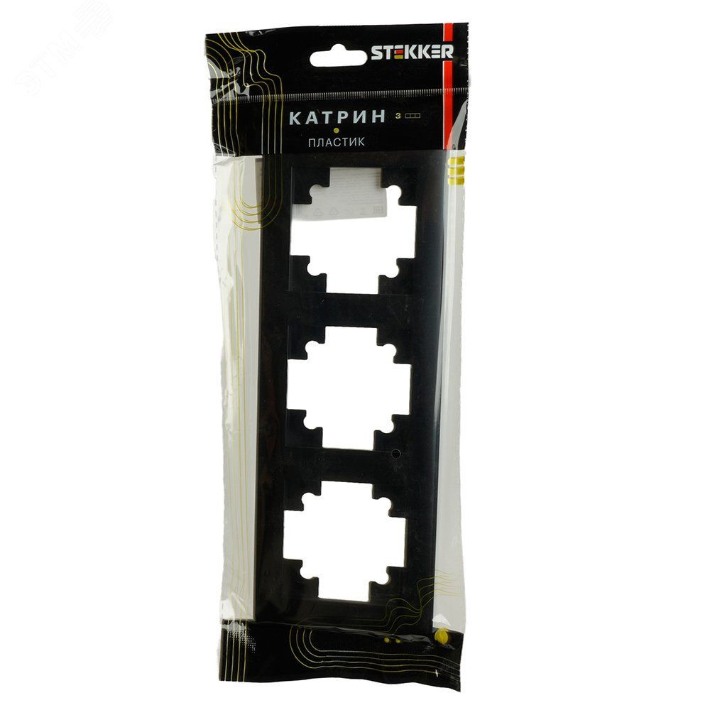 Рамка трехместная пластик серия Катрин черный STEKKER