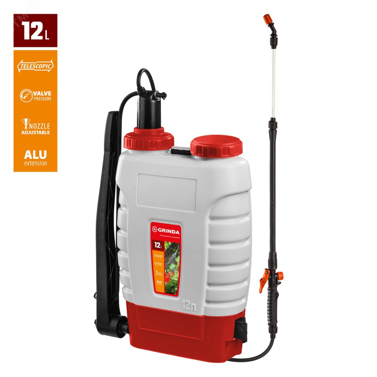 Ранцевый опрыскиватель GRINDA KS-12, 12 л, телескопический алюминиевый удлинитель 425217 используется для орошения и удобрения растений, а также для обработки кустарников и деревьев высотой до 3 метров. Ранцевая конструкция позволяет равномерно распределить нагрузку на плечи, обеспечивая продолжительную работу, не утомляя пользователя. Опрыскиватель оснащен рычагом насоса, что позволяет поддерживать давление в резервуаре, не снимая его.