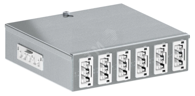 Вход - 1 трехфазная цепь через самоблокирующийся соединитель, 5-полюсный, тип WINSTA MIDI (штекер). Выход - 6 самоблокирующихся соединителей, 3-полюсные, белого цвета, 25 A, тип WINSTA MIDI (гнездовая часть - 2 x L1, 2 x L2, 2 x L3). Внутреннее соединение - провод из ПВХ H07V-U2,5.