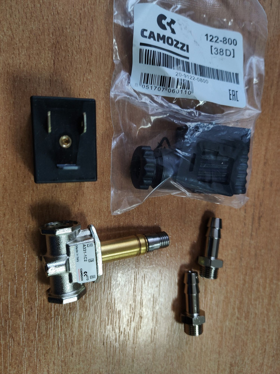 Пневмоклапан состоит из трёх основных частей: клапан, катушка (соленоид), разъём клапана.