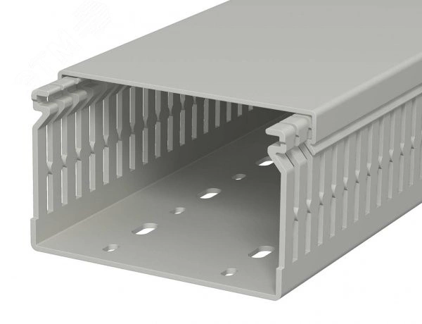 Распределительный кабельный короб с крышкой, с перфорированным основанием, сужения в боковых стенках предотвращают выпадение проводов. Номинальный размер системного отверстия соответствует внутреннему размеру короба. Специальные размеры по запросу.
