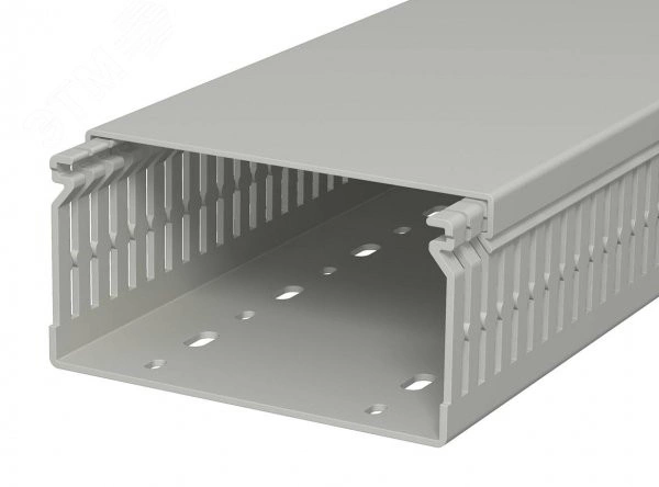 Распределительный кабельный короб с крышкой, с перфорированным основанием, сужения в боковых стенках предотвращают выпадение проводов. Номинальный размер системного отверстия соответствует внутреннему размеру короба. Специальные размеры по запросу.