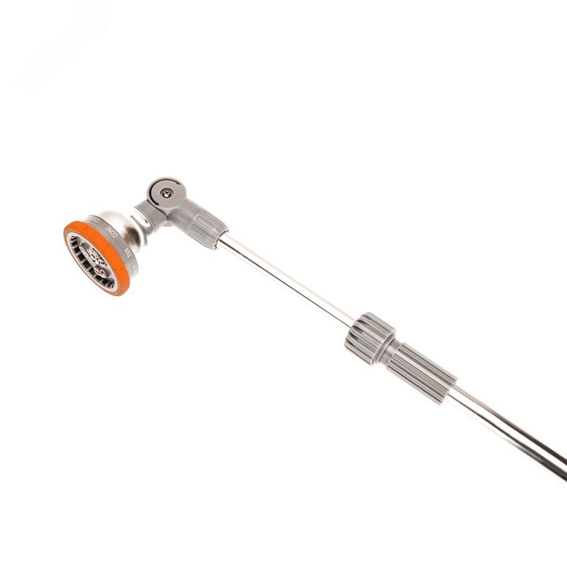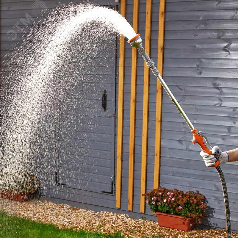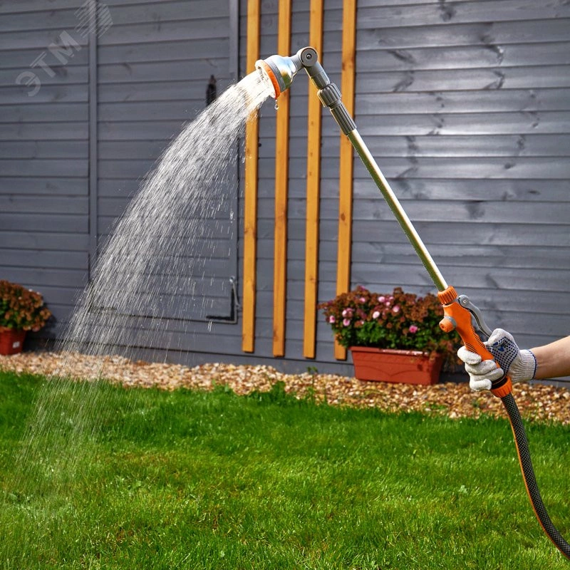 Телескопическая трубка представляет собой садовый аксессуар, предназначенный для полива, орошения и ухода за растениями. Особенно полезна при обработке деревьев. Телескопическая конструкция изделия позволяет настраивать длину в зависимости от конкретных целей, а также дотягиваться до труднодоступных мест и областей с минимальными усилиями. Курок, расположенный на ручке, обеспечивает удобное управление подачей воды. Благодаря наличию 9 режимов, которые регулируются поворотной головкой, вы можете выбирать оптимальный способ полива для каждого типа растений. Изделие надежно и герметично крепится к шлангу при помощи универсального соединителя, расположенного на конце пистолета.