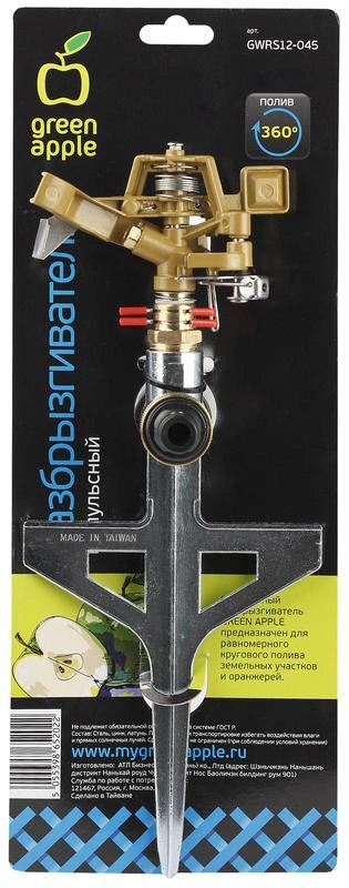Полное описание: Разбрызгиватель 360град. импульсный вращ. метал. (12/48) Green Apple Б0003104