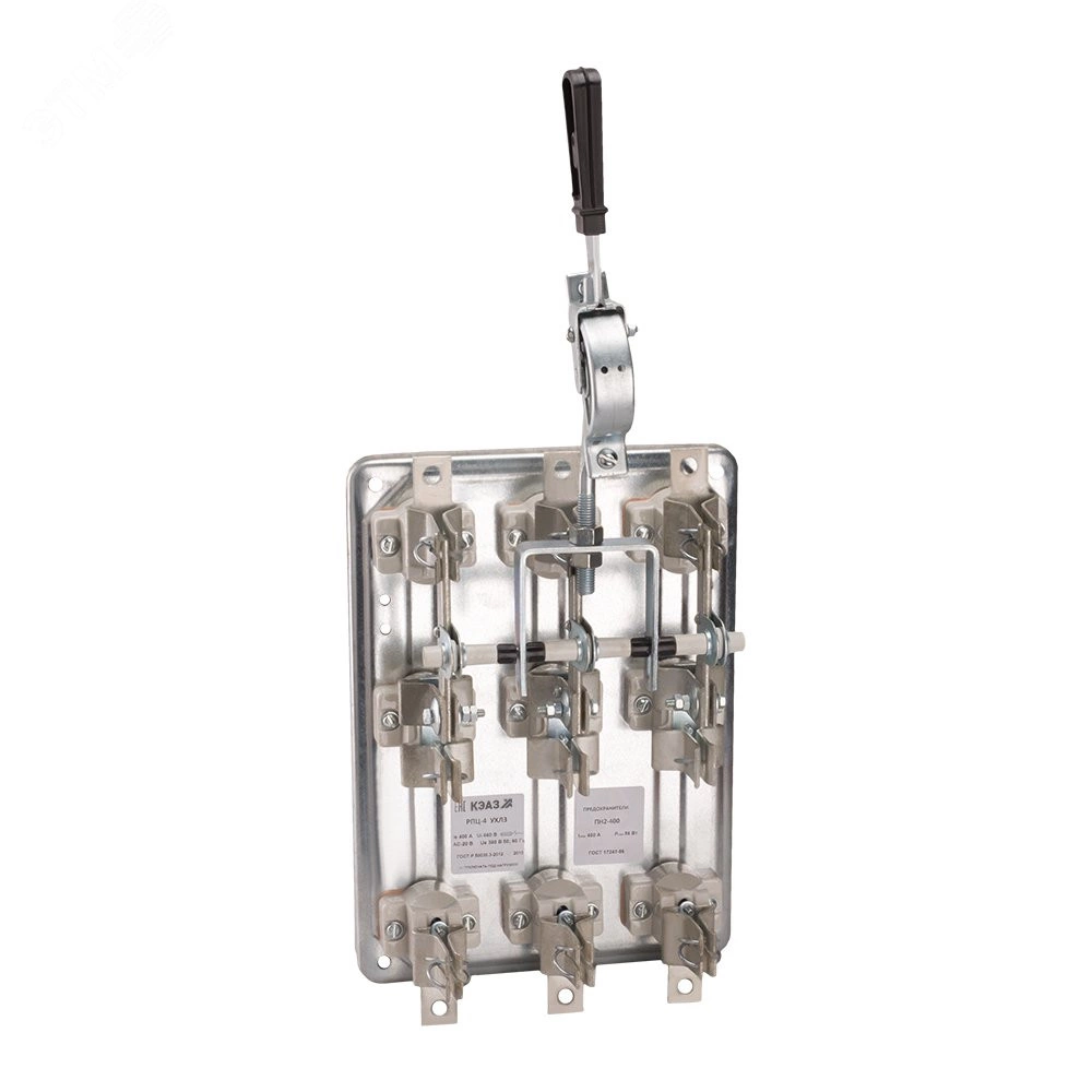 Выключатель-разъединитель 3 полюсный на номинальный ток 630 А, номинальный условный ток короткого замыкания Iq 32 (кА), где установлена центральная рукоятка, а максимальное сечение присоединяемых медных шин составляет 480 кв. мм.