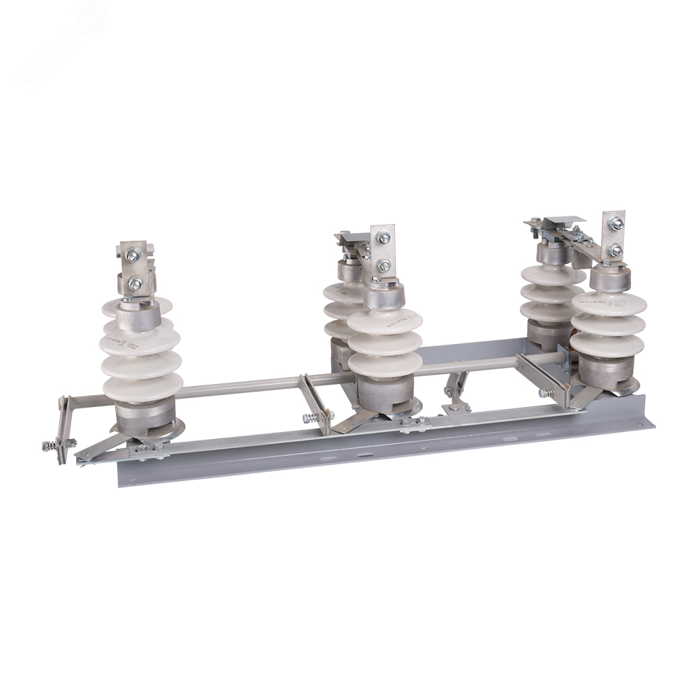 Высоковольтный 3 полюсный разъединитель переменного тока на номинальный ток 630 А. Разъединители высоковольтные КЭАЗ предназначены для включения и отключения участков электрической цепи напряжением до 10 кВ, с номинальным током 400 А, 630 А и 1000А. Высоковольтные разъединители РВ, РВО, РВЗ, РВФЗ, входящие в серию, служат для создания видимого разрыва, отделяющего выведенное из работы оборудование от токопроводящих частей, находящихся под напряжением. Разъединители не имеют дугогасительных устройств и поэтому предназначены для включения и отключения электрических цепей при отсутствии тока нагрузки.