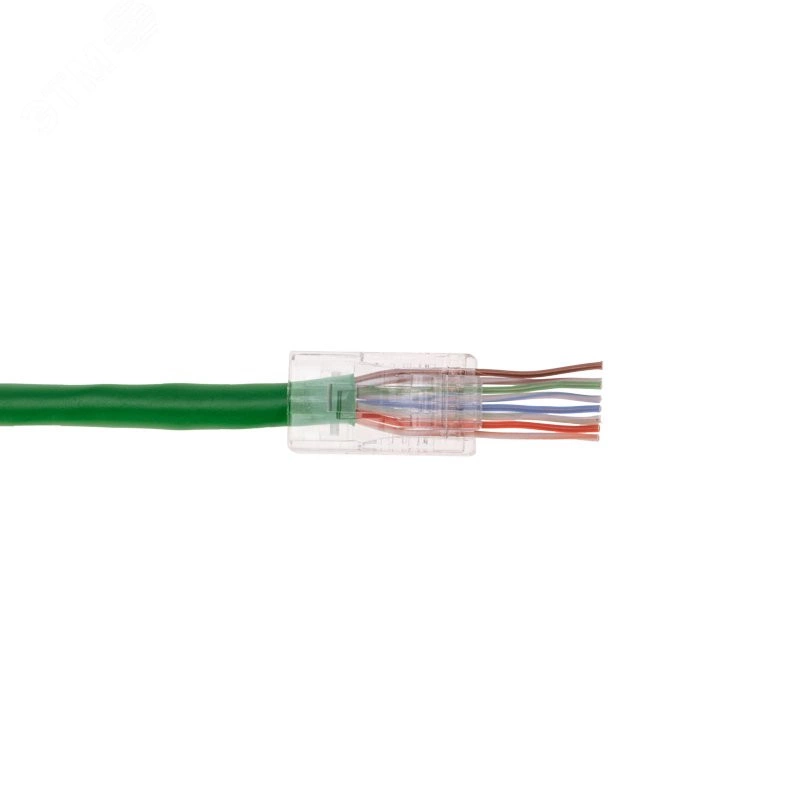 Сквозной разъем RJ-45 (8P8C) REXANT, под витую пару, U/UTP, категория 5e. Предназначен для соединения телекоммуникационного оборудования- компьютеров, офисных АТС, сетевых коммутаторов, концентраторов, коммутационных панелей, маршрутизаторов, патч-панелей, сетевых карт, а также другого оборудования, имеющего гнездо 8P8C. Штекер изготовлен из прозрачного качественного пластика. Имеет 8 посадочных мест и 8 ножей-контактов, которые покрыты слоем технического золота 3 мкм для повышения пропускной способности разъема. При изготовлении продукции используются надежные материалы, обеспечивающие высокий уровень передачи данных, долгий срок службы, а также гарантию работоспособности товара. Фиксация разъема на кабеле производится специальным обжимным инструментом. Сквозные отверстия упрощают и ускоряют монтаж, минимизируя ошибки, возникающие при подключении.