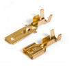 Предназначены для формирования вибростойких быстроразъемных соединений и оконцевания многопроволочных гибких медных проводов, Рекомендовано использовать в зонах вибрации и повышенных температур. Материал коннектора - латунь марки Л63. Покрытие коннектора - без покрытия. Температурный диапазон - от -55 градусов по Цельсию до +135 градусов по Цельсию. Максимальное напряжение - 400 В. Поперечные засечки в месте контактного скругления под кабельную жилу увеличивают механическую прочность соединения 'разъем–жила'. Двухконтурный обжим по жиле и изоляции обеспечивает особую механическую прочность и вибростойкость соединений. Конструкция клеммпредусматривает фиксаторы замкового типа, защелкивающиеся при парном соединении разъемов 'мама–папа', Размер контакта определяется шириной 'В' клемм РП-П. Для опрессовки используется двухконтурная матрица МПК-04 'КВТ'