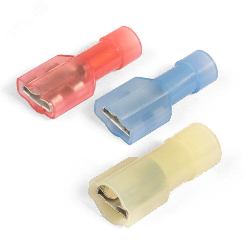 Предназначены для формирования быстроразъемных, полностью изолированных соединений многопроволочных медных проводов. Материал изоляции - самозатухающий нейлон. Не содержит галогенов. Термостойкость изоляции - 105 градусов по Цельсию. Материал разъема - латунь марки Л63. Покрытие разъема - электролитическое лужение. Максимальное напряжение - 400 В. Особенности конструкции - полностью изолированная конструкция, исполнение 'Easy Entry' - цельнолитой нейлоновый корпус имеет конусообразное сужение, обеспечивающее беспрепятственное заведение многопроволочной медной жилы поперечные засечки на внутренней поверхности трубной части разъемов увеличивают механическую прочность соединения с жилой каждая клемм имеет конструктивный фиксатор замкового типа для прочного механического соединения с разъемом 'папа'. Комплиментарны разъемам РПИ-П и выходам типа 'папа' на клеммх электрических устройств. Опрессовка проводника поверх изолирующего корпуса.