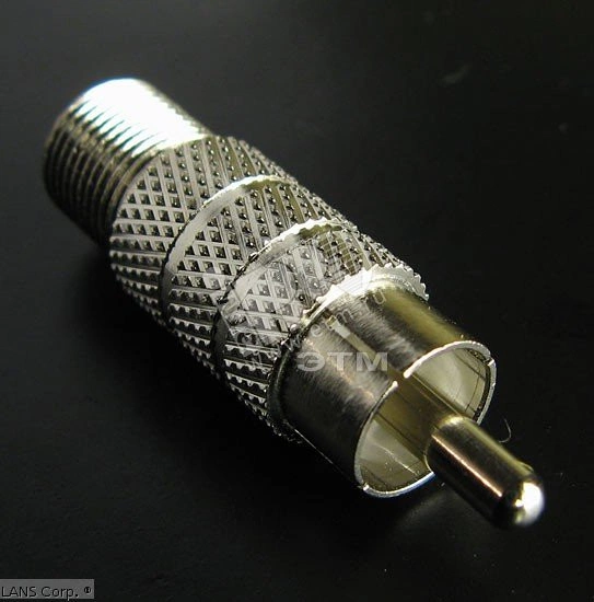 Переход RCA-штекер - F-розетка. Переход гнездо F - штекер RCA предназначен для соединения двух кабелей или кабеля с прибором, имеющих разные типы разъемов. С одной стороны находится гнездо F-разъема, а с другой штекер RCA. Изготовлен переход из никелированного сплава первичной меди (биметалл), что гарантирует минимальный уровень потерь при прохождении сигнала.