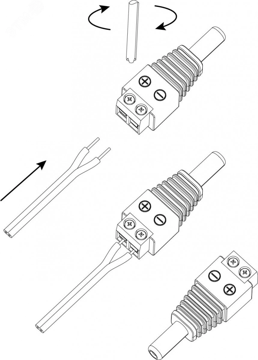Разъем питания штекер 2.1х5.5 с клеммной колодкой предназначен для оперативного подключения питания различного оборудования (систем видеонаблюдения, питания зарядных или других бытовых устройств) к источнику питания постоянного тока 12/24В (DC). Такой двухконтактный штекер монтируется на кабель с помощью винтовых зажимов.