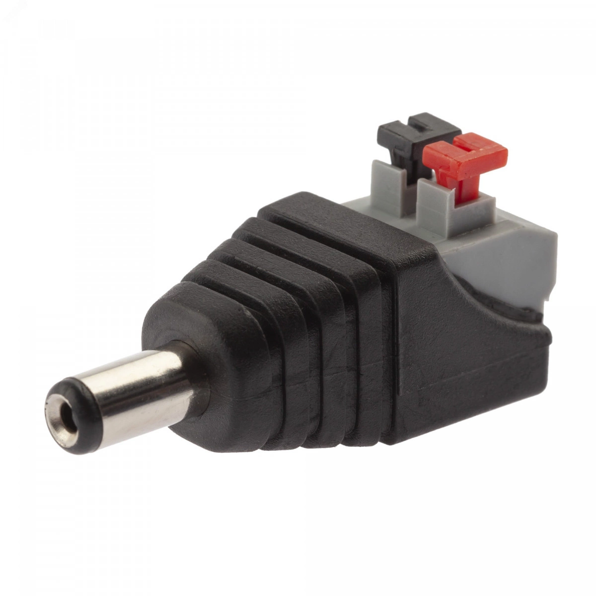 Разъем питания штекер 2.1х5.5 с быстрозажимной колодкой предназначен для оперативного подключения питания различного оборудования (систем видеонаблюдения, питания зарядных или других бытовых устройств) к источнику питания постоянного тока 12/24В (DC). Такой двухконтактный штекер монтируется на кабель без использования какого-либо инструмента методом подпружиненных зажимов.