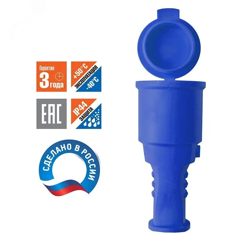 Полное описание: Разъем штепсельный UNIVersal с/з каучук с заглушкой 16А 250В IP44 цвет синий (еврослот)