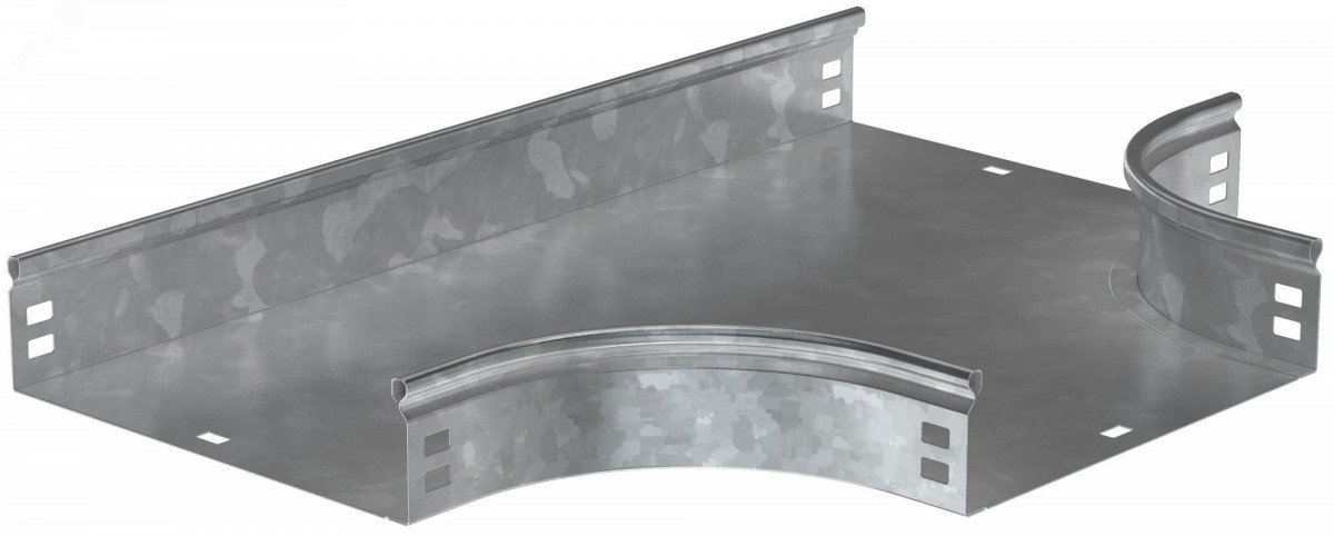 Разветвитель Т-образный плавный предназначен для организации Т-образного ответвления кабельной трассы. Крышка аксессуара в комплект не входит.Аксессуар изготовлен из стали с цинковым покрытием, нанесенным погружением изделий в расплав цинка (защитный слой цинка не менее 55 мкм).