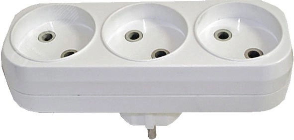 Разветвитель электрический 3 гнезда без заземления 16А 250В плоский белый