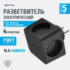 Разветвитель электрический (четверник, куб) АМ 16-4, 16А, черный