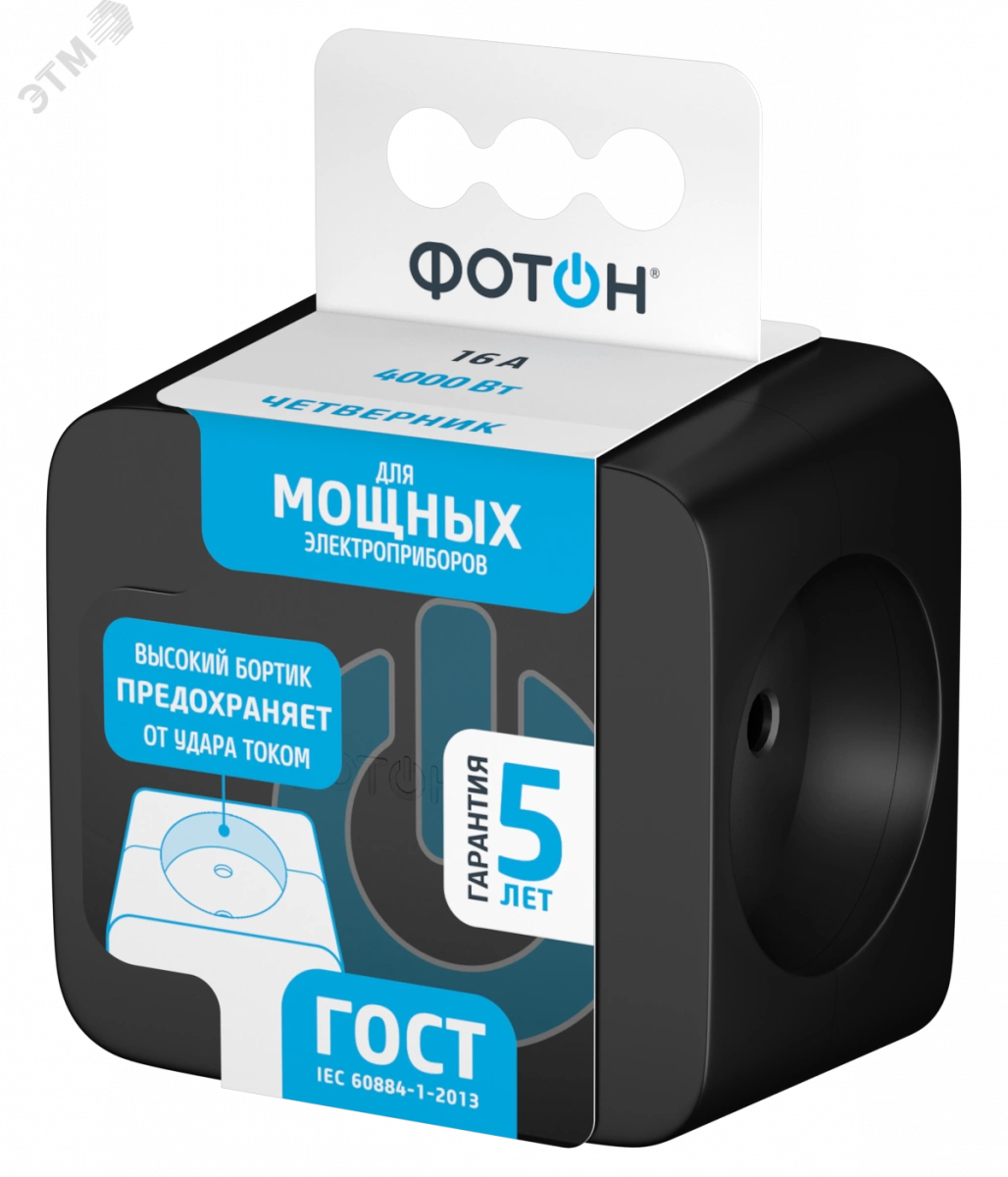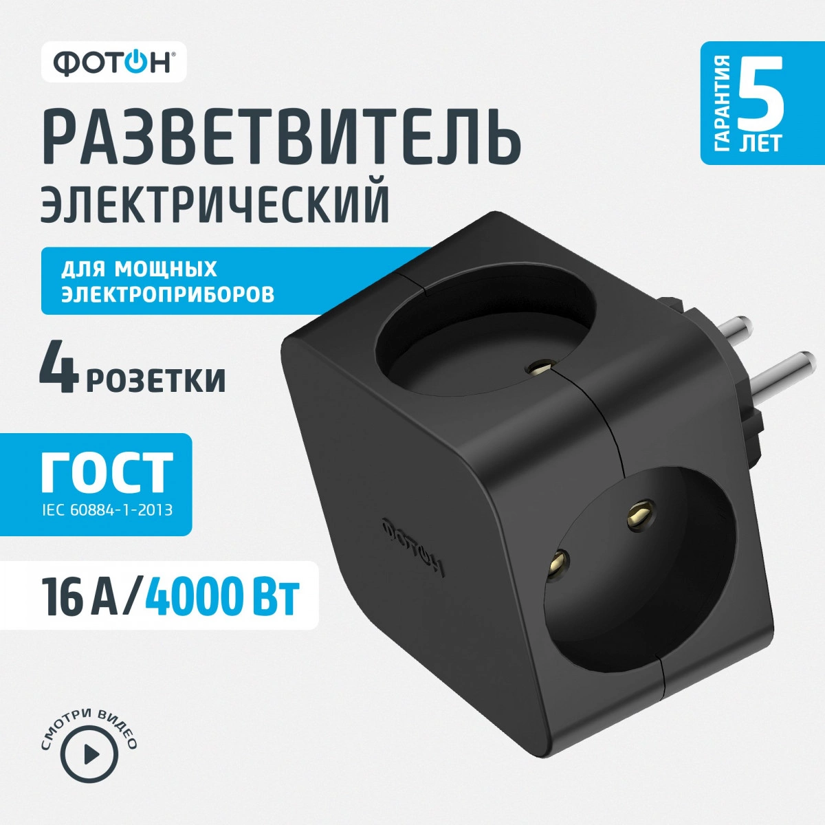 Разветвитель сетевой (четверник ''куб'') ''ФОТОН'' AM 16-4 с четырьмя розетками предназначен для подключения электроприборов суммарной мощностью до 4000Вт. Специально разработанный компактный дизайн позволяет разместить разветвитель в узком пространстве и пододвинуть мебель максимально близко к стене. Все разветвители полностью соответствуют нормам ГОСТ и ЕАС, и проходят двойной контроль качества и работоспособности. Предоставляется безусловная гарантия 5 лет.