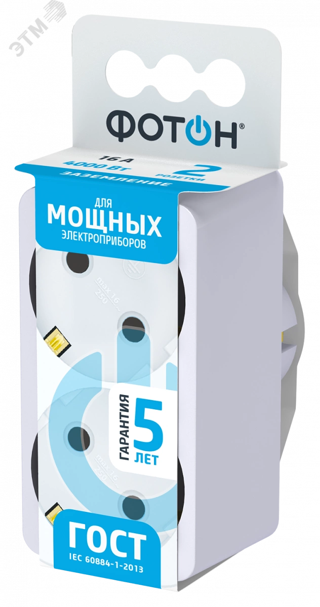 Сетевой разветвитель для подключения нескольких электроприборов к стационарной розетке. Корпус изготовлен из негорючего и ударопрочного ABS-пластика. Контактная группа изготовлена из латуни, что обеспечивает высокую электропроводность и максимально плотный контакт со штырями вилки подключаемых приборов. Может использоваться в качестве переходника для подключения электроприборов с евровилкой к розеткам российского стандарта. Безусловная гарантия 5 лет. Вся продукция полностью соответствует нормам российского ГОСТ и EAC. Все удлинители и разветвители ''ФОТОН'' проходят двойной контроль качества и работоспособности.