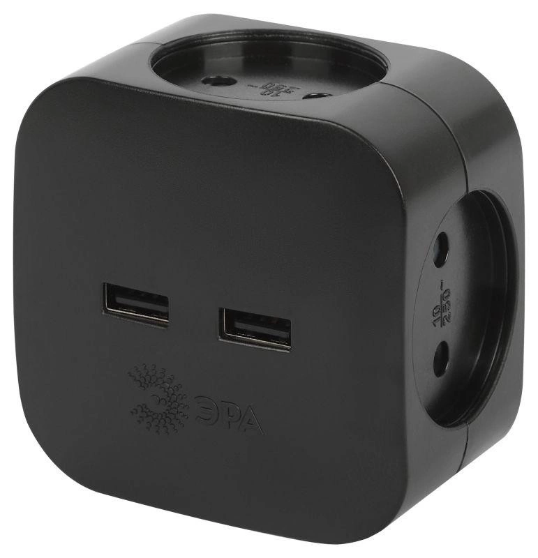 Разветвитель электрический SP-4-USB-B на 4 розетки 220В+ 2xUSB 2400мА без заземл 10А черн. Эра Б0049536