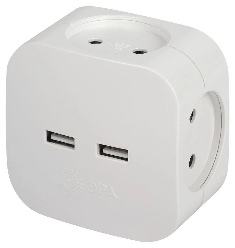 Разветвитель электрический SP-4-USB-W на 4 розетки 220В+ 2xUSB 2400мА без заземл 10А бел. Эра Б0049532