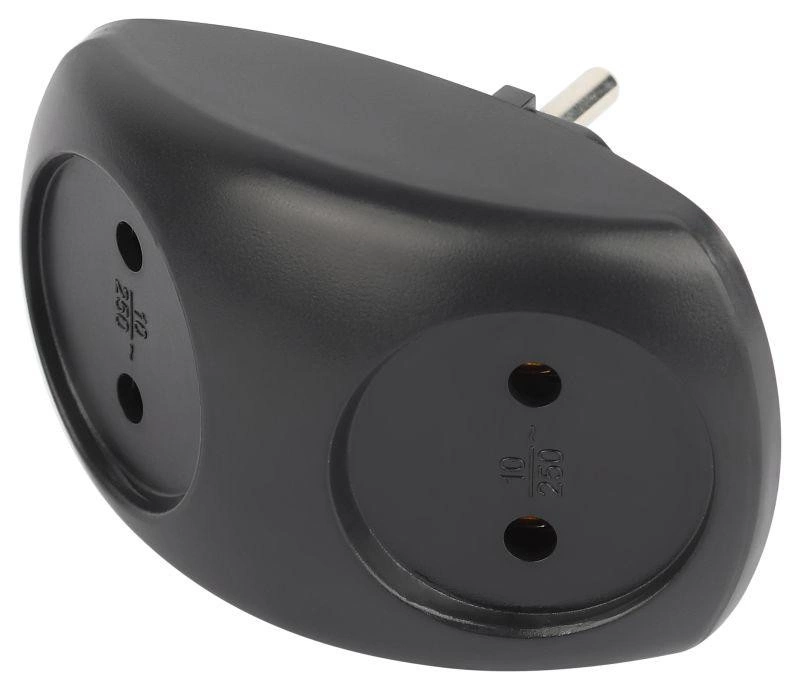 Полное описание: Разветвитель электрический SPx-2-B на 2 розетки без заземл. 10А черн. Эра Б0059720