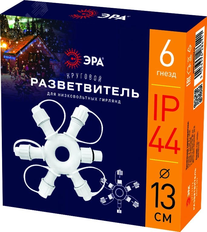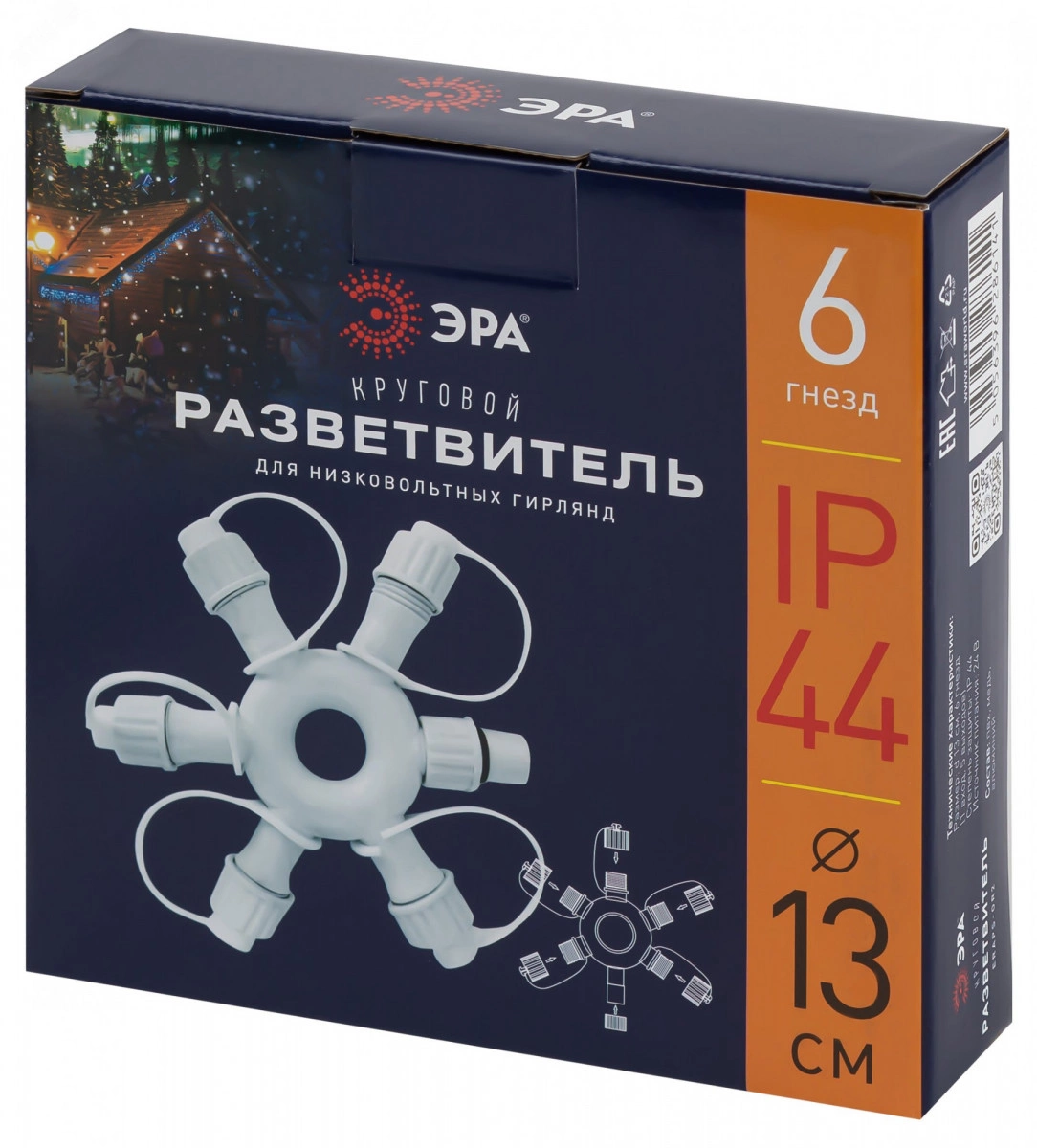 Разветвитель ERAPS-OR2 круговой для гирлянд 6 гнезд IP44 ПВХ 24 В ЭРА