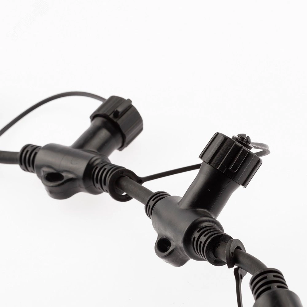 Разветвитель для новогодних гирлянд, имеет степень защиты IP65, практичную длину 2 метра и 20 гнезд через каждые 10 см. Выполнен в черном цвете из каучука. Допустимое напряжение 220В.