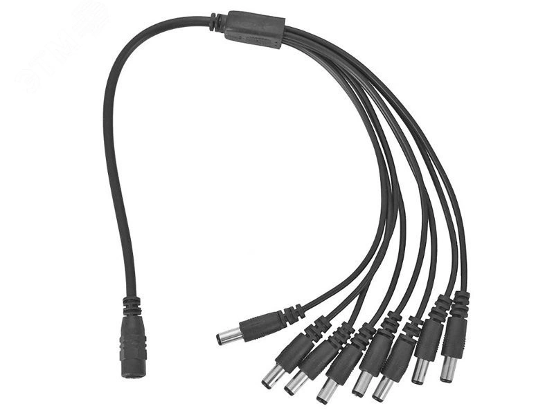 Соединительный кабель для разветвления линии питания (1 гнездо DC на 8 штекеров DC), позволяет подключить к одному блоку питания несколько камер или микрофонов. Материал изготовления кабеля - ABS пластик, силикон, медь