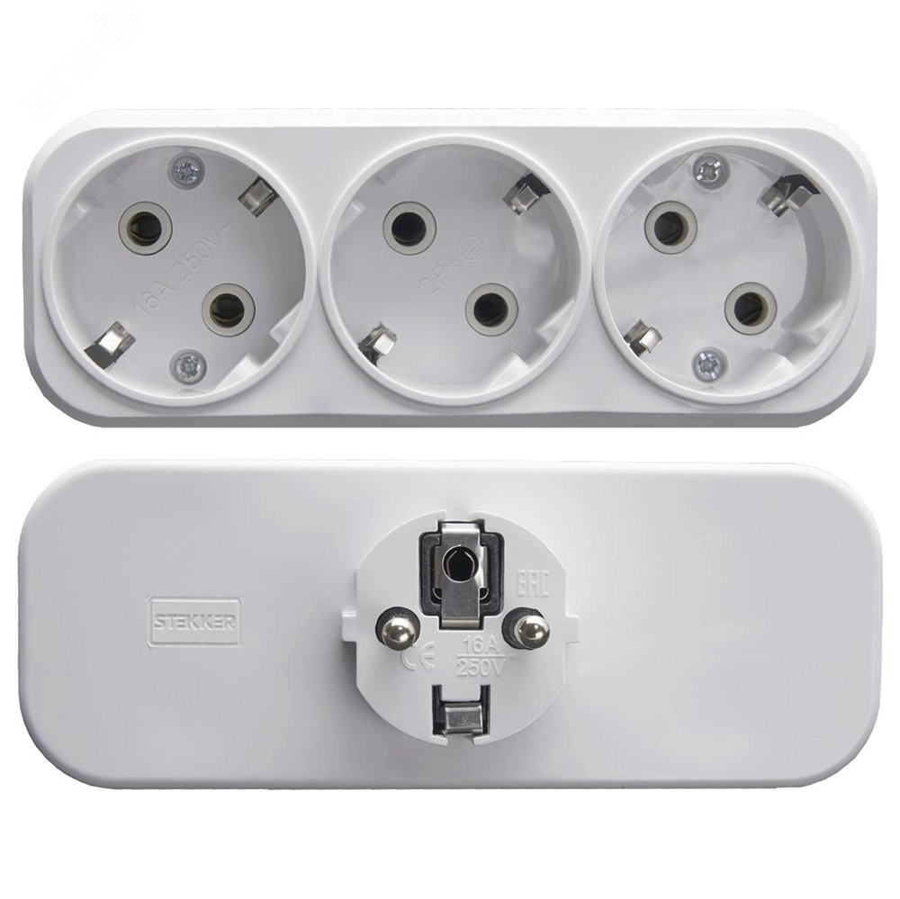Полное описание: Разветвитель сетевой 3-местный с/з, белый, Stekker