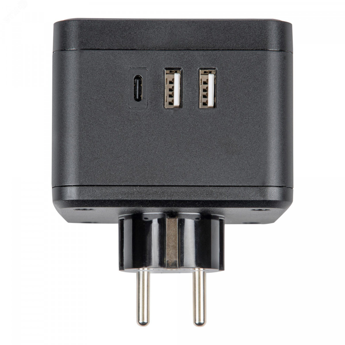 Разветвитель сетевой с выключателем с заземлением 2 гнезда 2USB+1TYPE C 16А 3500Вт Черный ТМ UnielS-GES2-16SBUC BLACK