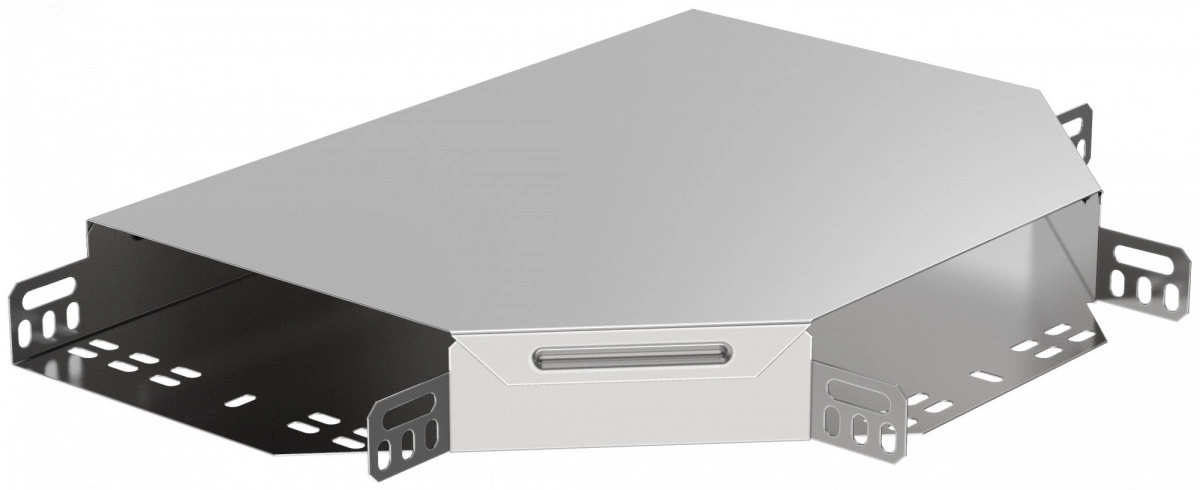 Разветвитель Т-образный служит для организации Т-образного ответвления кабельной трассы. Данный аксессуар поставляется в комплекте с крышкой. Все аксессуары для металлических лотков изготовлены из стали горячего цинкования методом Сендзимира (защитный слой цинка 10-20 мкм).