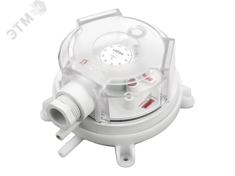 Датчики перепада давления LF32 это серия простых и надежных дифманометров (реле перепада давления) с диапазонами регулировки от 20 до 5000 Паскаль, которая предназначена для контроля состояния работы вентиляторов, воздушных фильтров и других элементов вентиляционных систем. Если перепад давления превысил установленное (заданное) значение, то мембрана оказывает давление на шток, который воздействует на контактную группу датчика перепада давления и замыкает/размыкает цепь управления или индикации, сигнализируя о состоянии, работе или неисправности элемента вентиляционной системы.Монтаж реле давления LF32 осуществляется в непосредственной близости от контролируемого элемента вентиляционной системы. Для подключения датчика перепада давления к воздуховодам используется установочный (монтажный) комплект DFK-200 (входит в комплект поставки), состоящий из 2-х фланцев и трубок из ПВХ длиной 1 м.