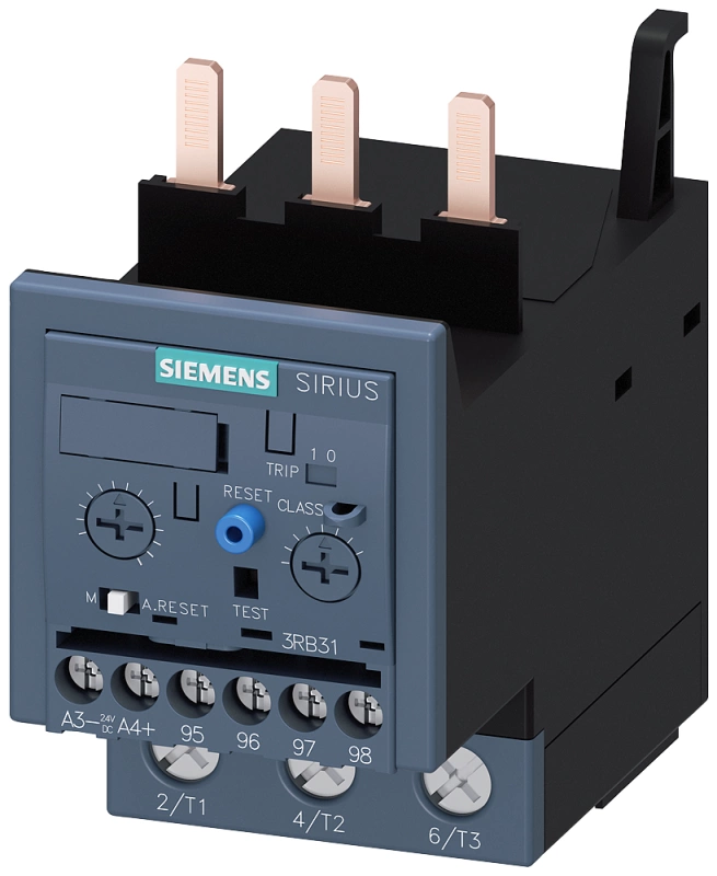 Реле перегрузки 20…80А для защиты электродвигателя типоразмер S2 класс 5E...30E монтаж на контактор силовая цепь: винтовые клеммы вспом. цепь: винтовые зажимы ручной-авто сброс определение замыкания на землю Siemens 3RB31334WB0