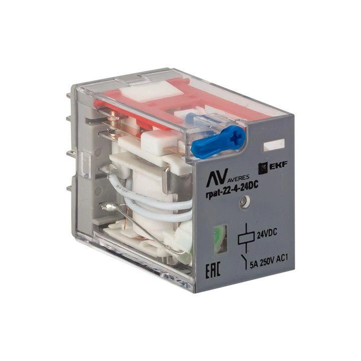Полное описание: Реле промежуточное RPAt 22/4 5А 24В DC с кнопкой и мех. индикацией AVERES EKF rpat-22-4-24DC