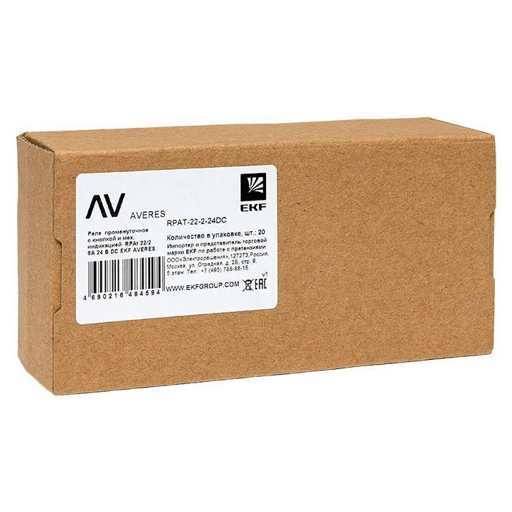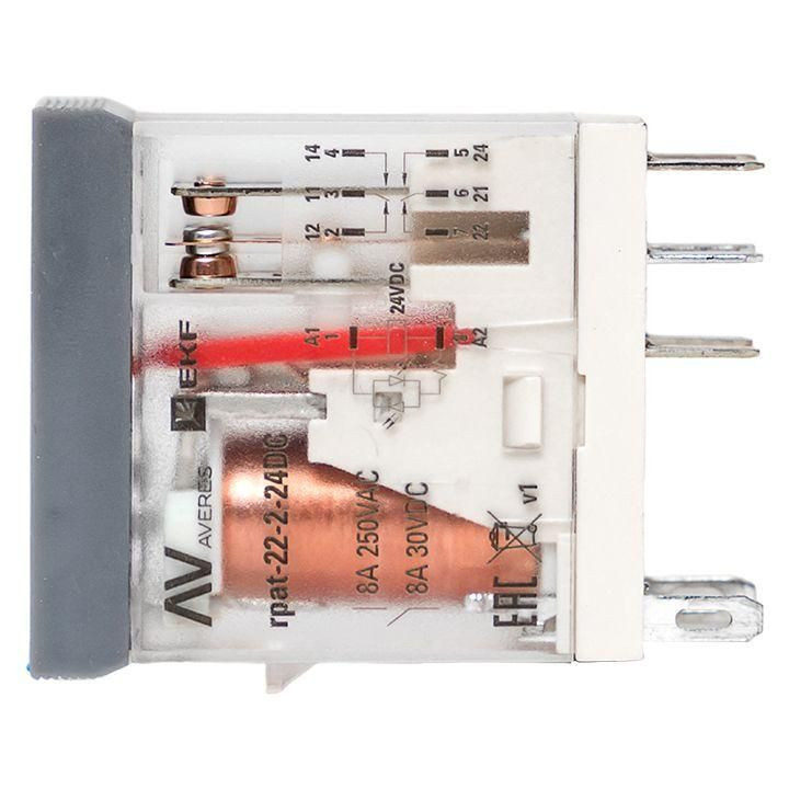 Полное описание: Реле промежуточное с кнопкой и мех. индикацией RPAt 22/2 8А 24В DC EKF rpat-22-2-24DC