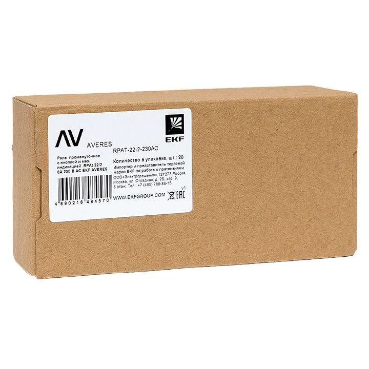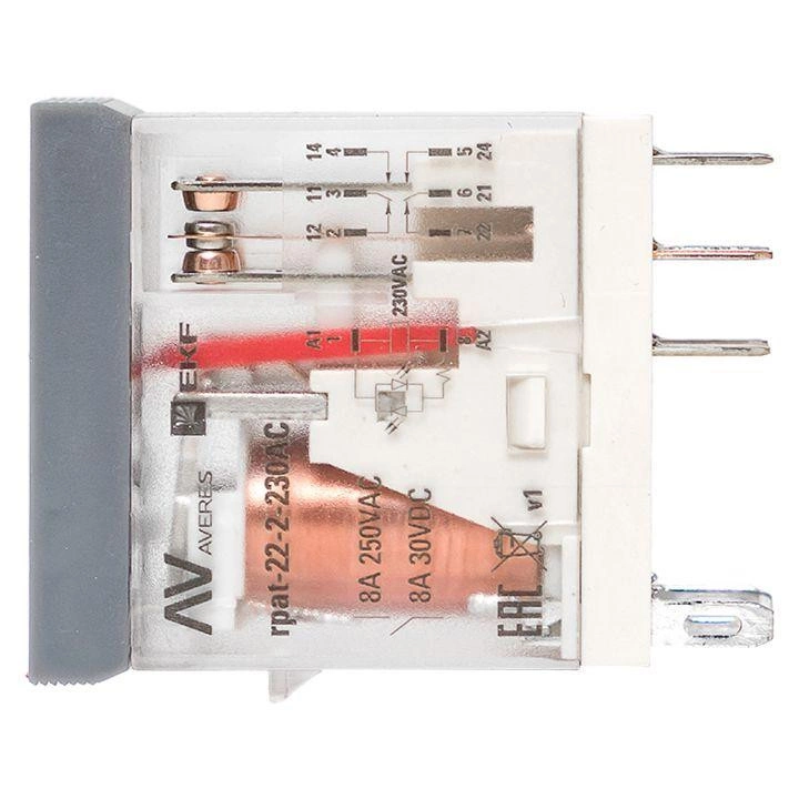 Полное описание: Реле промежуточное с кнопкой и мех. индикацией RPAt 22/2 8А 230В AC EKF rpat-22-2-230AC