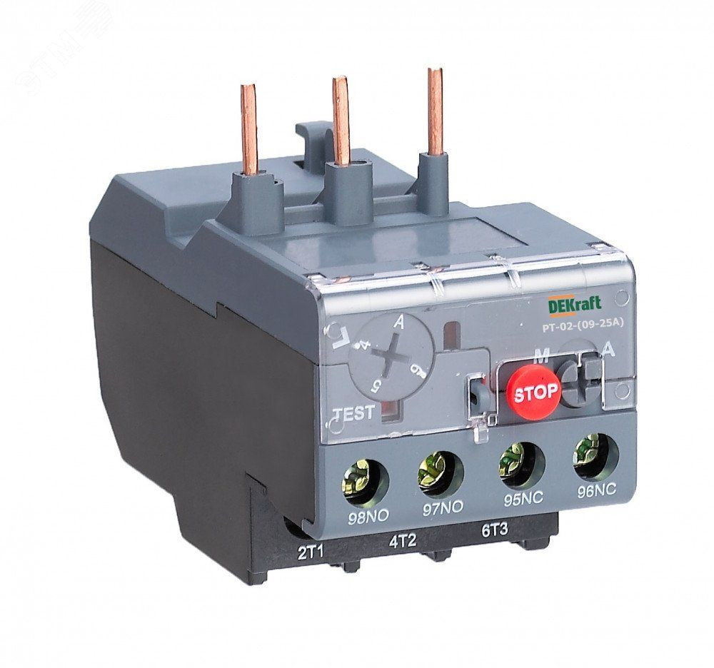 Тепловое реле перегрузки серии РТ-02 DEKraft - предназначено для применения с контакторами КМ-102 на ток 9-25 А - трехПолюсное. Диапазон уставок реле 7,0-10 А - класс расцепления 10А - два режима повторного включения - ручной и автоматический. Тепловые реле РТ-02 применяются для защиты цепей переменного тока и электродвигателей от перегрузки, асимметрии фаз, затянутого пуска и заклинивания ротора. реле подходит к соответствующим контакторам других производителей.