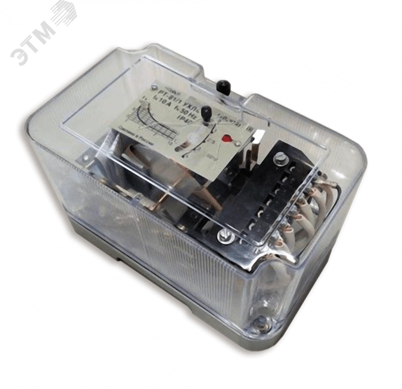 Реле РТ-81/1 арт. 210810017-01- это индукционное реле максимального тока с зависимой выдержкой времени, предназначенное для схем релейной защиты в качестве аппарата, реагирующего на увеличение тока в контролируемой цепи. Реле максимального тока РТ-81/1 применяется для защиты электрических машин, трансформаторов и линий электропередачи при перегрузках и коротких замыканиях. Реле рассчитано на номинальный ток 10А. Все механизмы реле тока РТ-81/1 смонтированы внутри корпуса, состоящего из механически прочного цоколя и съемного прозрачного кожуха. Еще одной особенностью данного аппарата является универсальный комплект для присоединения проводников и один замыкающий или размыкающий (при перестановке элементов) контакт.