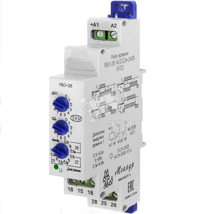 Реле времени однокомандное РВО-26 (далее устройство) предназначено для формирования сигнала задержки на включение (выключение), после снятия напряжения питания на предварительно установленную выдержку времени. Устройство может использоваться в системах автоматики, как комплектующее изделие.