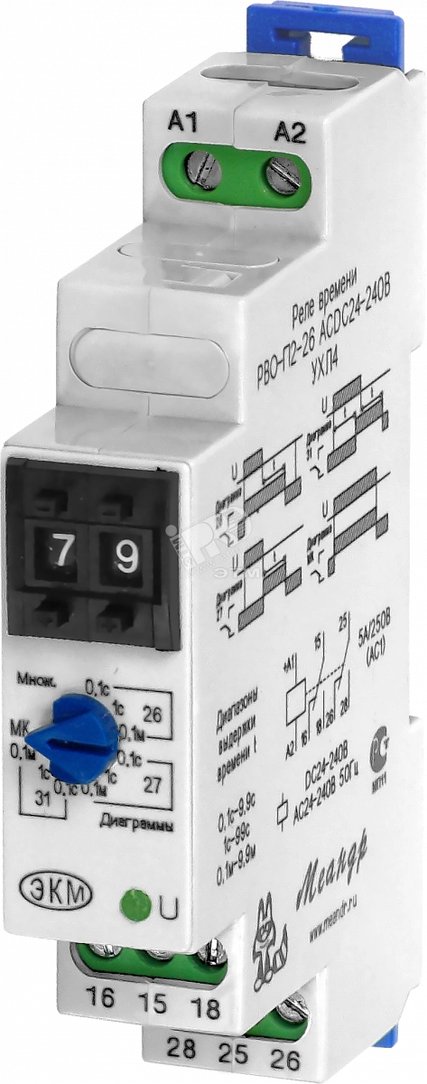 Реле времени предназначено для формирования задержки на выключение встроенного реле после снятия напряжения питания или для включения встроенного реле после снятия напряжения питания на предварительно установленную выдержку времени. Реле обеспечивает работу встроенной контактной группы без выдержки времени. Реле выпускаются в унифицированном пластмассовом корпусе с передним присоединением проводов питания и коммутируемых электрических цепей. Крепление осуществляется на монтажную рейку-DIN шири- ной 35мм (ГОСТ Р МЭК 60715-2003) или на ровную поверхность. Для установки реле на ровную поверхность, фиксаторы замков необходимо переставить в крайние отверстия. Конструкция клемм обеспечивает надежный зажим проводов сечением до 2.5мм2.