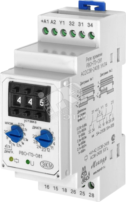 Полное описание: Реле времени РВО-П3-081 0.01с-999ч катушка управления AC/DC 36-240В