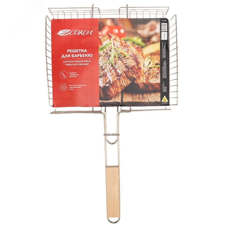 Глубокая решетка для барбекю СОКОЛ 34х26 см ппредназначена для приготовление овощей, грибов и мяса на огне. Выполнена из прочного металла с никелевым покрытием, которое предотвращает возникновение коррозии и потерю рабочих свойств. Ручка изготовлена из натурального дерева. Удобно лежит в руке и меньше нагревается, что позволяет легко переворачивать решетку при приготовлении, не боясь обжечься. Изделие надежно удерживает продукты и прочно закрывается. Толщина проволоки - 4,0 мм, 2,5 мм.